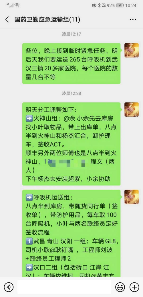 22日上午到23日下午,經(jīng)過兩天的接力奮戰(zhàn),由衛(wèi)勤員工、醫(yī)工工程師組成的這支六人應急運送團隊,克服路途遙遠、位置難辨、道路封鎖等一切困難,橫跨武漢蔡甸、東西湖、新洲、黃陂等全境十個區(qū),在不到48小時的時間里提前送達并全部交付使用。在清晨的大霧中出發(fā),在濃重的夜色中歸來,他們爭分奪秒日夜兼程,不僅是為了完成目標任務,更多的是承載了一份神圣使命:早一分鐘送到,就能早一分鐘減輕患者的痛苦。