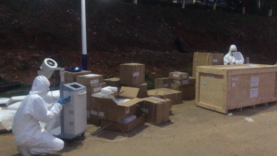 在完成方艙醫(yī)院的配送任務同時,國藥衛(wèi)勤組建另一支團隊分別趕赴火神山醫(yī)院、泰康同濟(武漢)醫(yī)院、武漢第一醫(yī)院和光谷婦幼醫(yī)院,在高強度的工作狀態(tài)下連續(xù)組裝了近一百臺高流量呼吸機和三臺超紫外線機器人,為疫區(qū)核心醫(yī)院的防疫抗疫提供了有力保障。來不及吃飯和休息,只有緊張忙碌和奔跑。在人力不足的情況下,他們既是司機,又是搬運工、業(yè)務員和工程師,每個人的能力和體力都發(fā)揮到了極限。在這種情況下,團隊成員還要及時完成保障任務,成為第一個進入火神山紅區(qū)組裝醫(yī)療設備的醫(yī)療服務團隊。