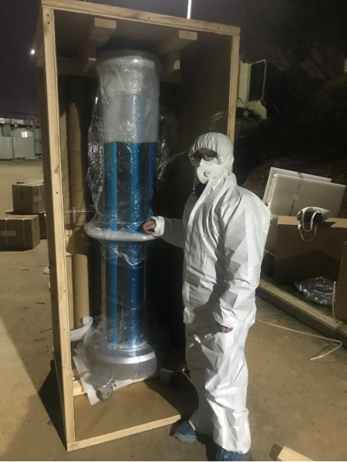 為了能讓這個“重型武器”盡快發(fā)揮作用,團隊成員穿上兩層防護服把設備運送到紅區(qū)。沒有猶豫,沒有近距離面對新冠病毒的恐懼,只有一心保障抗疫前線的責任和使命感。紫外線機器人設備有一人多高,他們小心翼翼地拆卸、組裝、調(diào)試,而身旁經(jīng)過的就是一批正在轉(zhuǎn)運的重癥病人。憑借專業(yè)高效的工作作風和不畏艱險的團隊精神,團隊成員得到了院方的高度贊譽。